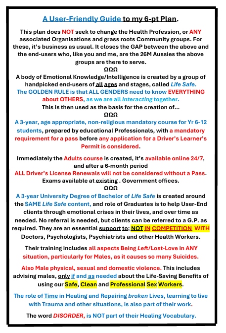 A BODY OF EIQ KNOWLEDGE IS CREATED BY A HAND PICKED GROUP OF AUSTRALIANS WHO HAVE A RANGE OF ALL AGES AND GENDERS. N.B.THESE DO NOT INCLUDE 1. DOCTORS. 2. OTHER HEALTH CARE PROFESSIONALS. 3. MEMBERS OR REPS OF/FROM ANY AUSTRALIAN GOVERNMENTS, MINORITY/LOBBY/GROUPS, GOVERNMENT FUNDED ORGANISATIONS E.G.TARGET 4. BEYONDBLUE, LIFELINE, GENDER, POLICE, HELPLINES ETC. IT IS A TOTALLY REPRESENTIVE BUT HAND PICKED GROUP OF CIRCA 15 AUSSIES WHO MEET TO BUILD THIS EIQ BODY OF KNOWLEDGE PRINCIPALLY BY WORKING BY VIDEO ONLINE MEETINGS. THIS AUSTRALIAN COMMUNITY GROUP, HAND PICKED FOR THEIR 1. LIFE SKILLS/LIVED-EXPERIENCE, 2. THEIR ADVERTISING/MEDIA/COMMUNICATION SKILLS 3. HIGH LEVELS OF EMOTIONAL INTELLIGENCE. 4. PREFERRED GIFTED WITH AS MANY OF THESE SKILLS AS POSSIBLE. THIS TOTALLY UNIQUE GROUP WILL BE EXTREMELY WELL PAID FOR THEIR WORK AND ALL RESOURCES NEEDED WILL COME OUT OF EACH AND EVERY AUSTRALIAN’S TAX PAYER’S DOLLARS FROM/BY AN ACT OF FEDERAL PARLIAMENT.